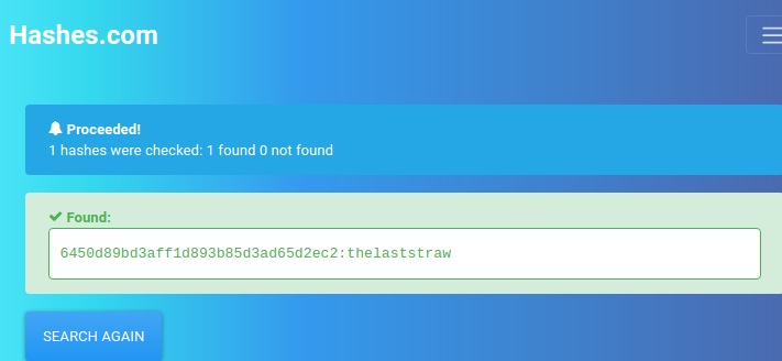 - Vamos verificar o que significa aquele hash que encontramos. O site conseguiu quebrar o hash mas nao temos nada legivel