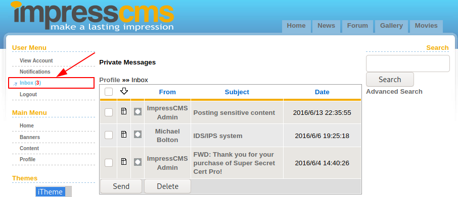 - Acessando a pagina do Portal dos Funcionarios temos um CMS, o ImpressCMS.