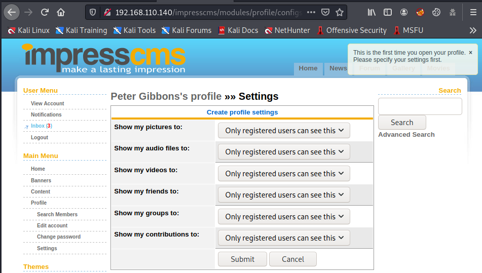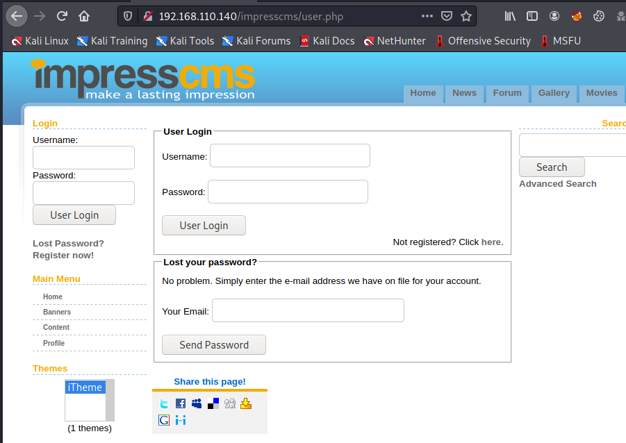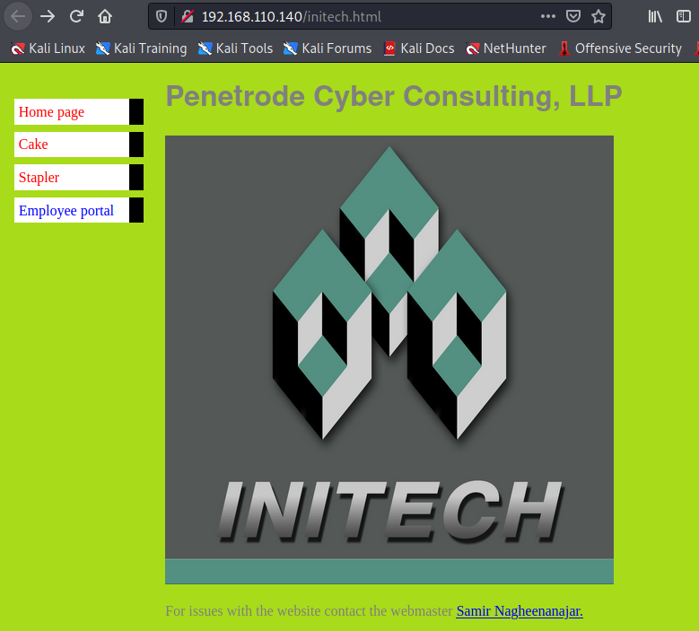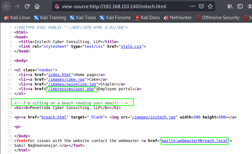 - Acessando a pagina temos um portal com algumas informacoes interessantes… Um link para o /impresscms/ e o email do Samir Nagheenanajar (webmaster@breach.local)