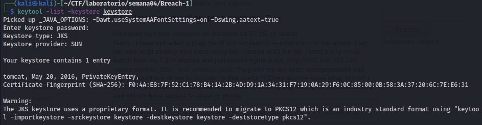 - Aquele arquivo keystore pode ser a chave para descriptografar essa captura. Quando verificamos o conteudo dele o proprio arquivo diz que esta em formato para o JDK, para as outras aplicacoes e necessario converter…