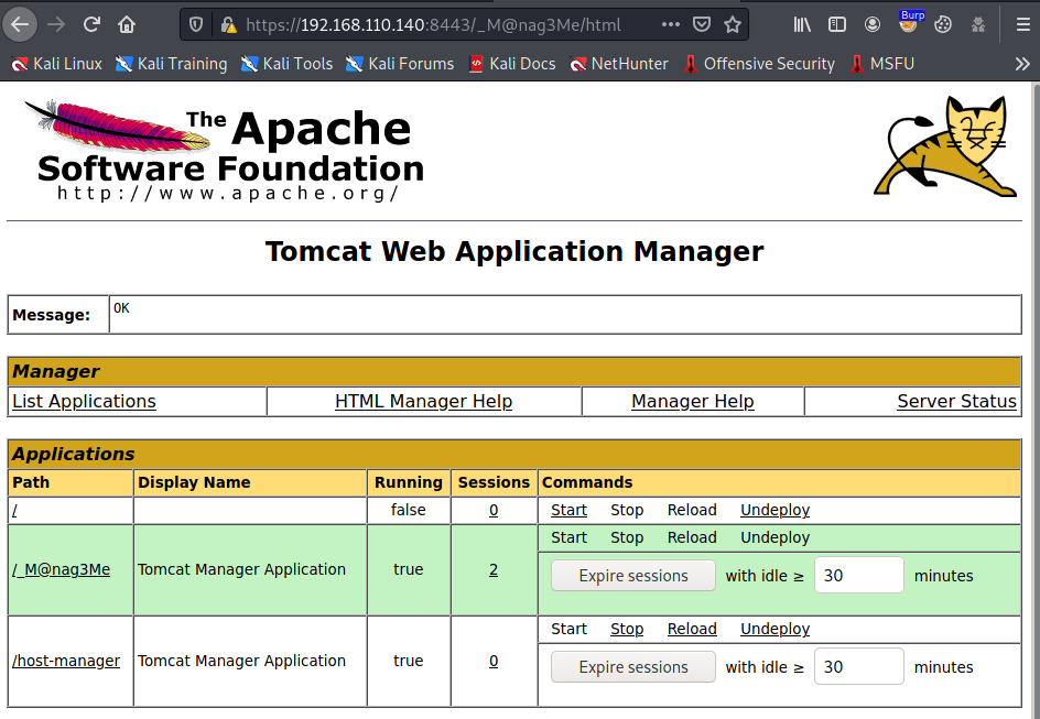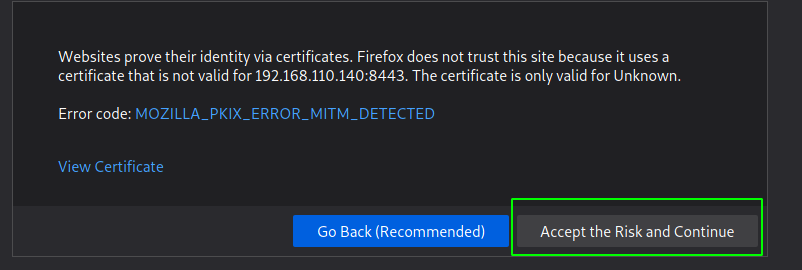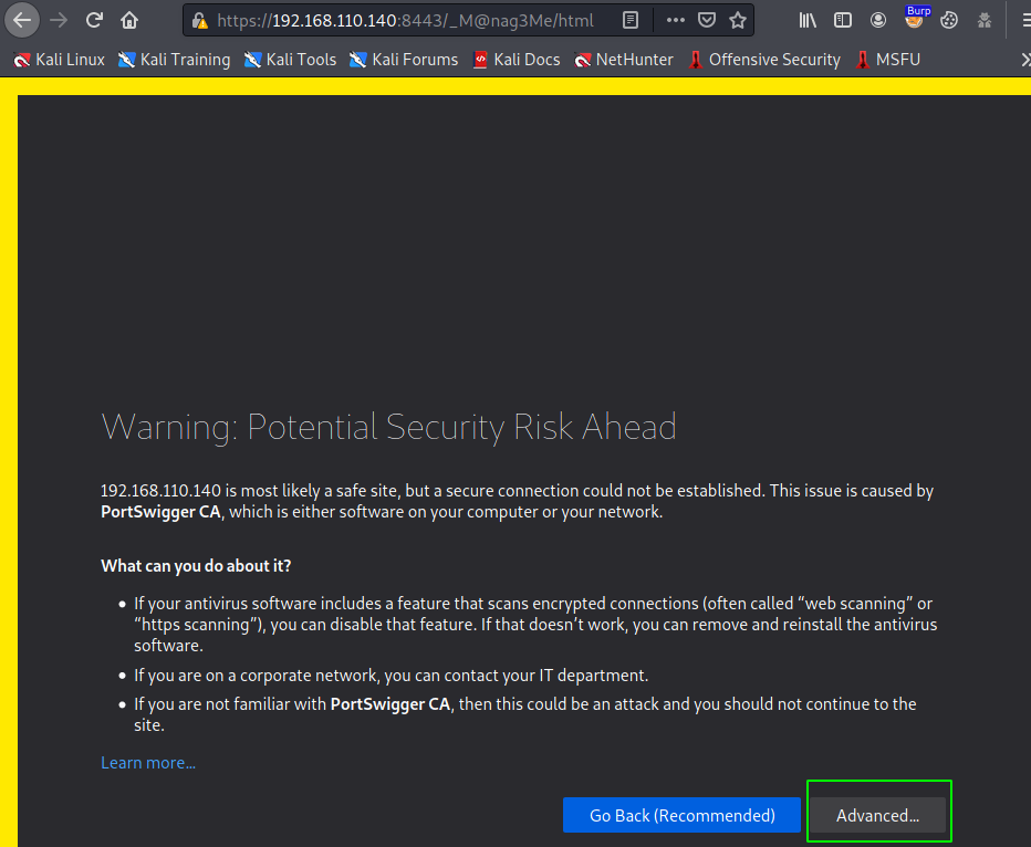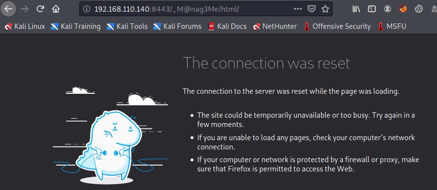 - Agora acessamos a pagina https://192.168.110.140:8443/_M@nag3Me/html. Ele vai dar o aviso de seguranca mas vamos acessar a pagina mesmo assim