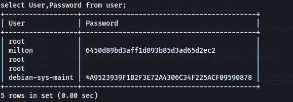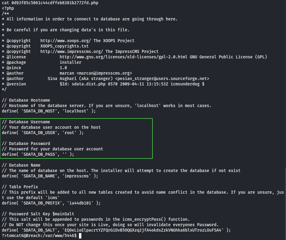 - Depois de varias tentativas, conseguindo achar a credencial do MySQL em um arquivo no diretorio /var/www/5446