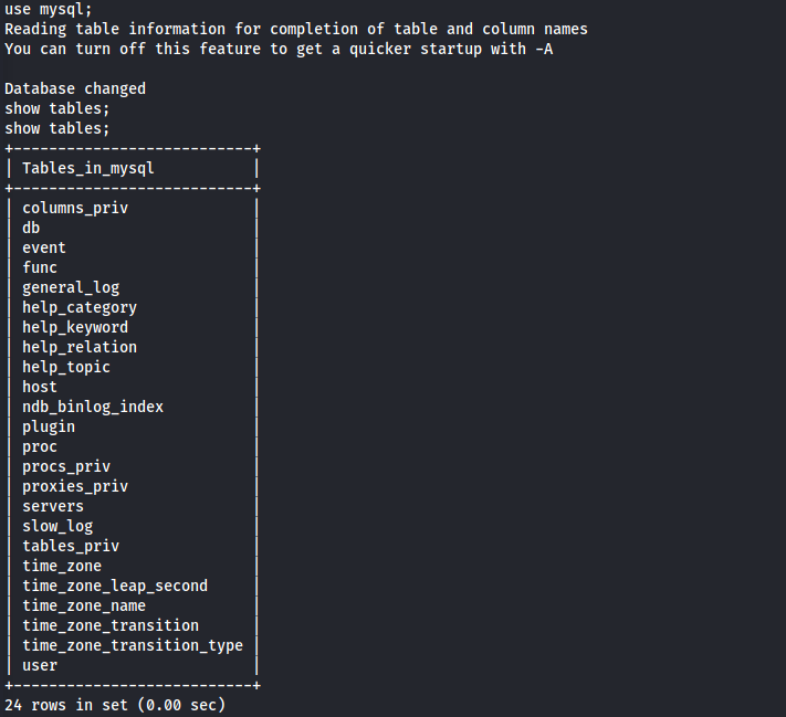 - Vamos dar uma olhada nas tabelas do banco “mysql”
