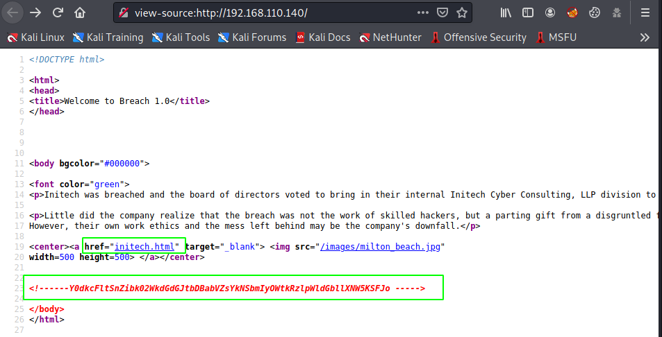 - No codigo fonte da pagina encontramos o que parece ser um hash e um link para initech.html