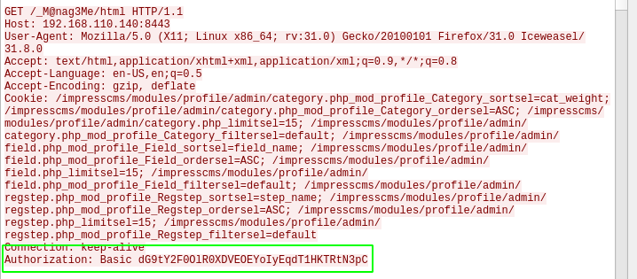 - Em outra parte da captura do trafego tem uma requisicao passando um codigo em base64: dG9tY2F0OlR0XDVEOEYoIyEqdT1HKTRtN3pC. Decodificando-o temos tomcat:Tt\5D8F(#!*u=G)4m7zB