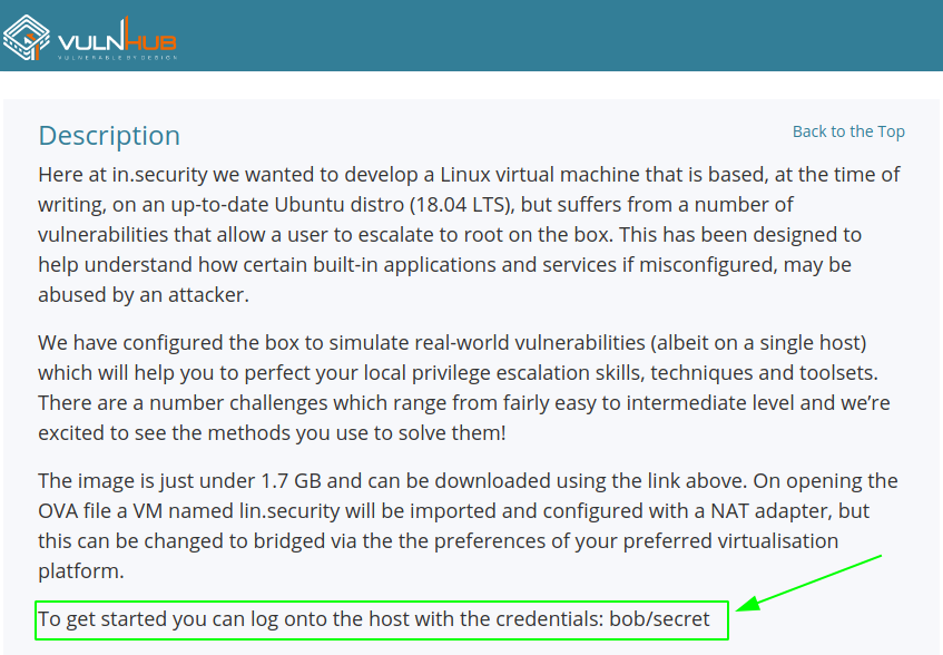 Na descricao da maquina na pagina do vulnhub temos uma dica. Ele pede para iniciarmos logando com a credencial bob:secret