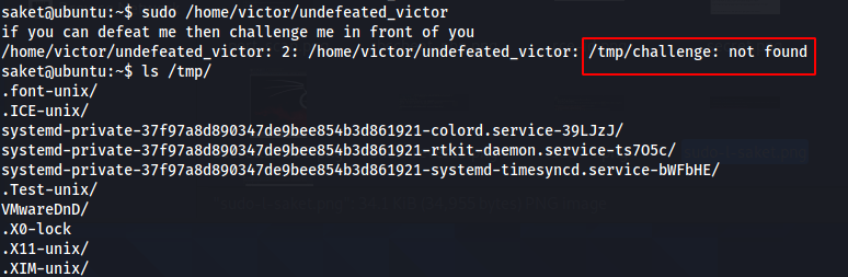 - Ao executar o binario e exibido uma mensagem de afronta e um erro de “not foud” do arquivo /tmp/challenge
