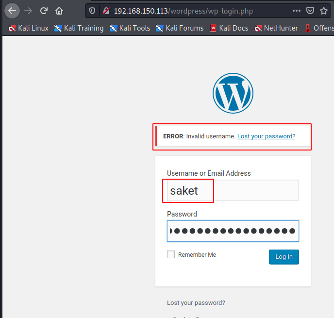 - Nao conseguimos logar na pagina do wordpress com o usuario saket