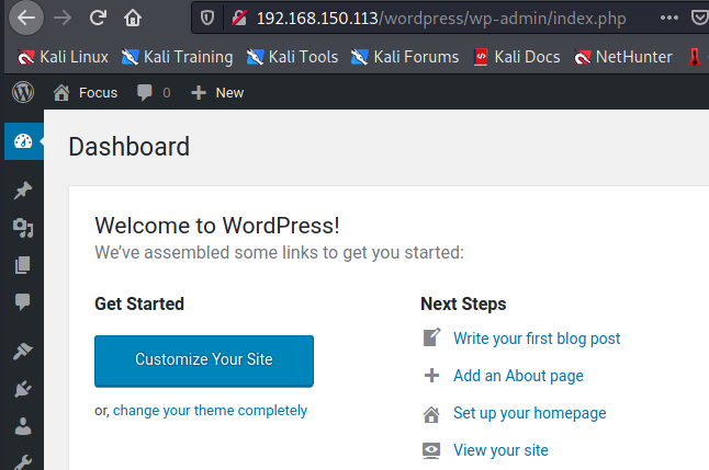 - Conseguimos acessar a pagina de administracao do wordpress com as credenciais
