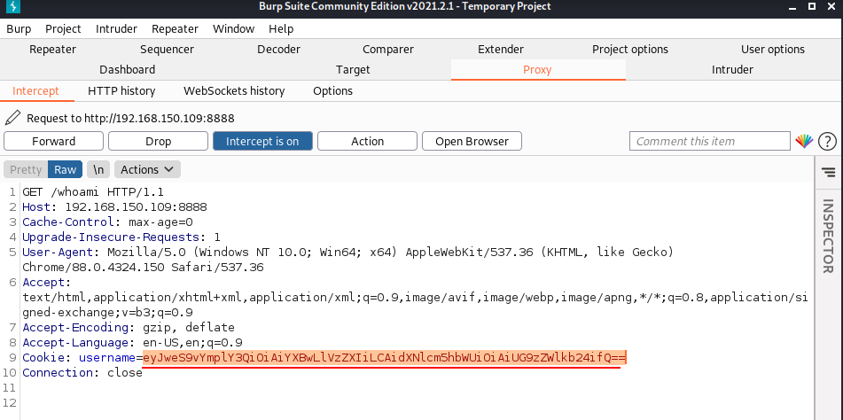 - Parece que o valor do cookie “username” e algo que esta codificado em base64. Entao vamos decodificar