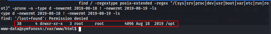 - Procurando por arquivos que possam nos ajudar a escalar privilegio encontramos o diretorio /opt que possui uma data de modificacao diferente