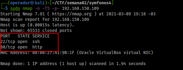 sudo nmap -n -T5 -p- 192.168.150.109