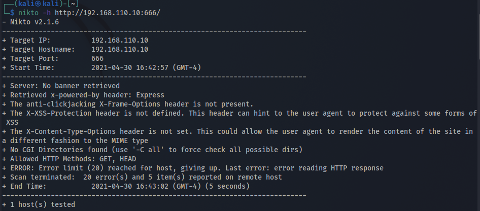 nikto -h http://192.168.110.10:666/