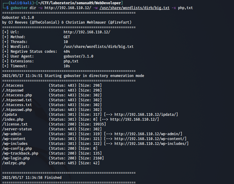 Realizamos o fuzzy de diretorios com o Gobuster. Obtivemos alguns resultados interessantes, dentre eles temos o diretorios /ipdata e o arquivo /xmlrpc.php