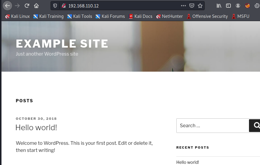 O primeiro passo e verificar o que temos na pagina web pelo browser. Temos um WordPress