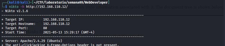 Rodamos o Nikto, encontramos alguns diretorios, mas nada de interessante ate agora