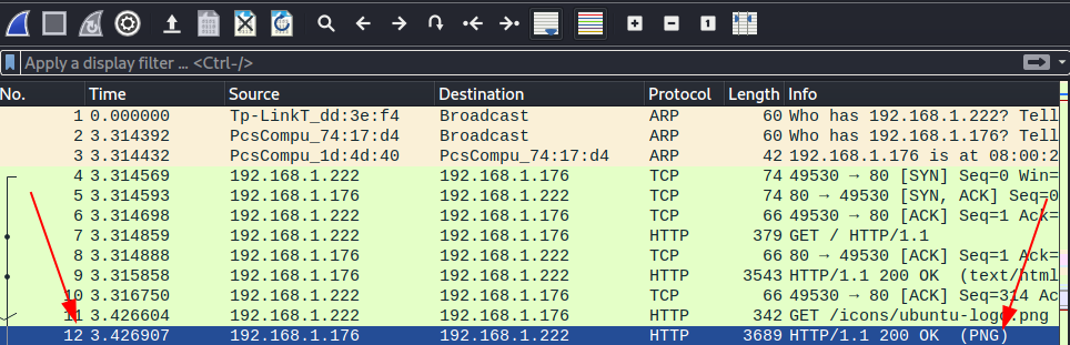 Para baixar a imagem voltamos para o painel da captura e clicamos duas vezes no pacote que a imagem foi enviada