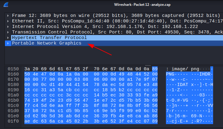 Abrimos a captura no wireshark e vimos que contem uma imagem